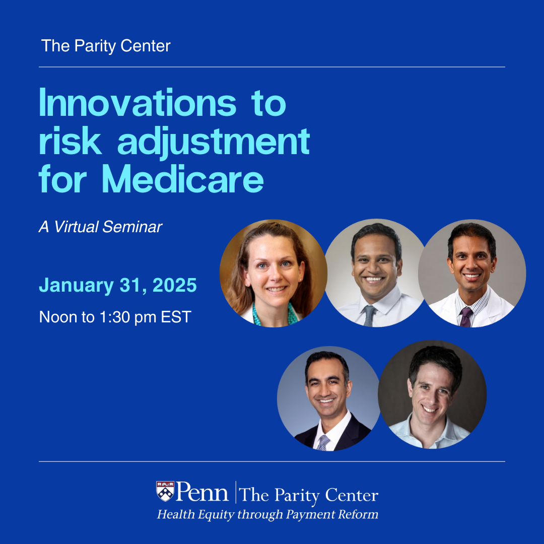 To ensure health care providers are paid fairly based on patient health status and to encourage providers to care for all patients regardless of healthcare needs, risk adjustment methodology has been used to account for differences in the characteristics of patients. However, current risk adjustment methodology has significant and well-recognized limitations. During this 90-minute webinar hosted by The Parity Center at the University of Pennsylvania, a panel of experts will present and discuss current strategies that have been designed to improve the accuracy and equity of risk scoring methodology, focusing on well-known risk adjustment methods such as Medicare’s Hierarchical Condition Categories (CMS-HCC) model. Topics to be discussed include fairness in risk adjustment, use of machine learning techniques to improve accuracy and combat selection, and current methodological advancements in social risk adjustment.